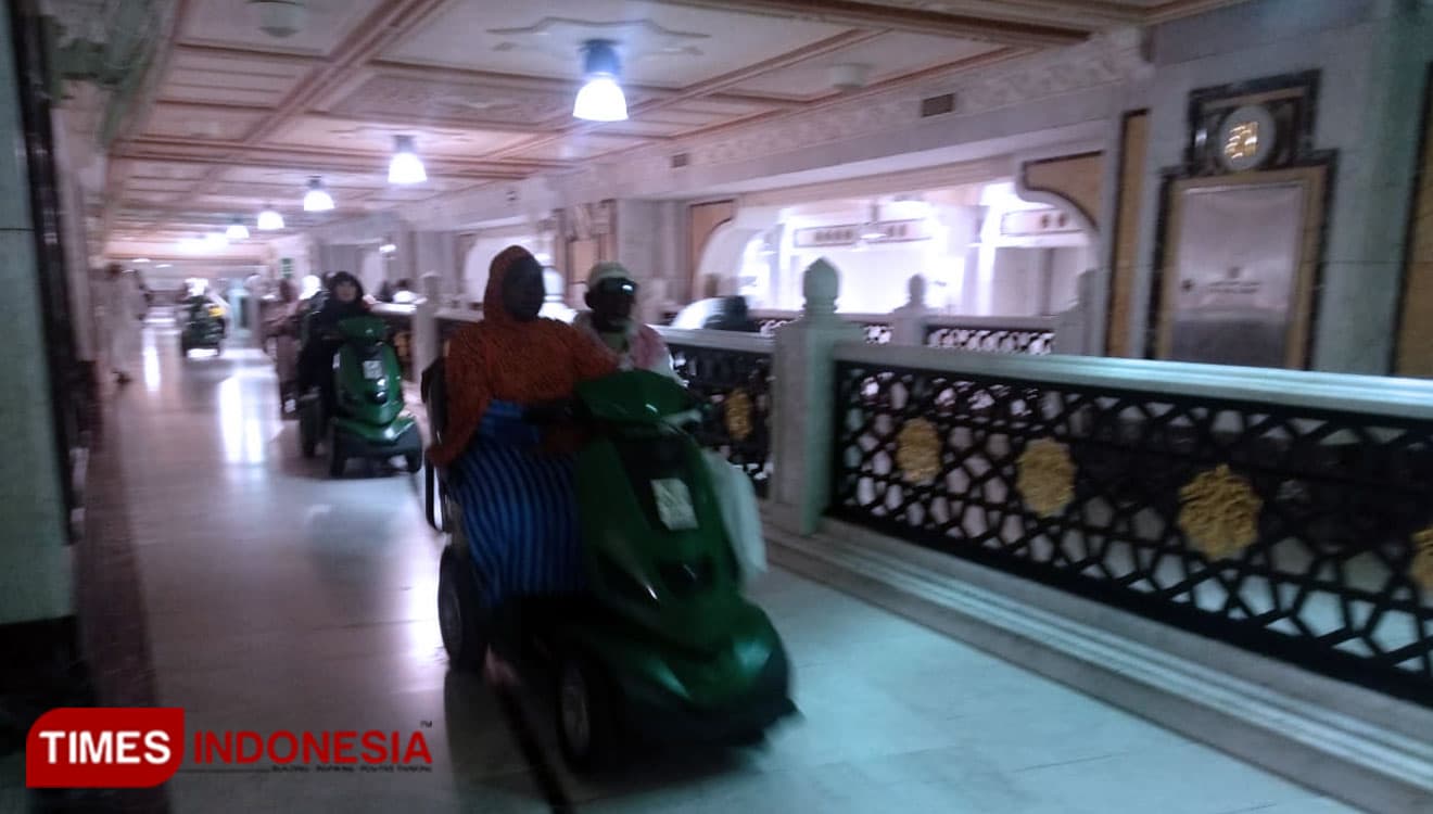 Ini tentu saja berat bagi jemaah lansia. Dengan skuter, mereka bisa santai melaju di lantai khusus kendaraan listrik. Lantainya sepi, tidak perlu berdesakan. Skuter bisa digunakan untuk tawaf dan sai.